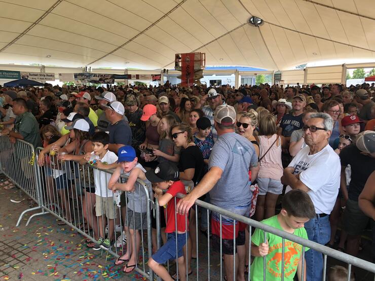 During this three-day event, each team weighs their catch at the end of each day. The Team with the greatest number of pounds and ounces at the end of three day wins. Teams with fish that cannot be released and reasonably expected to survive will receive a weight penalty of 4 oz. per fish. Fish are weighed on the Harbourfront and then recorded and tagged (if they have not been tagged already from previous tournaments). After, each fish is transported back to the part of the lake where it was caught.